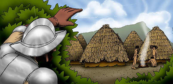 The Spaniards discover the indian community of Kalamarí.